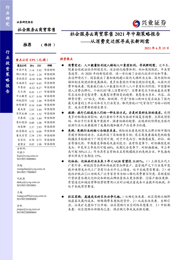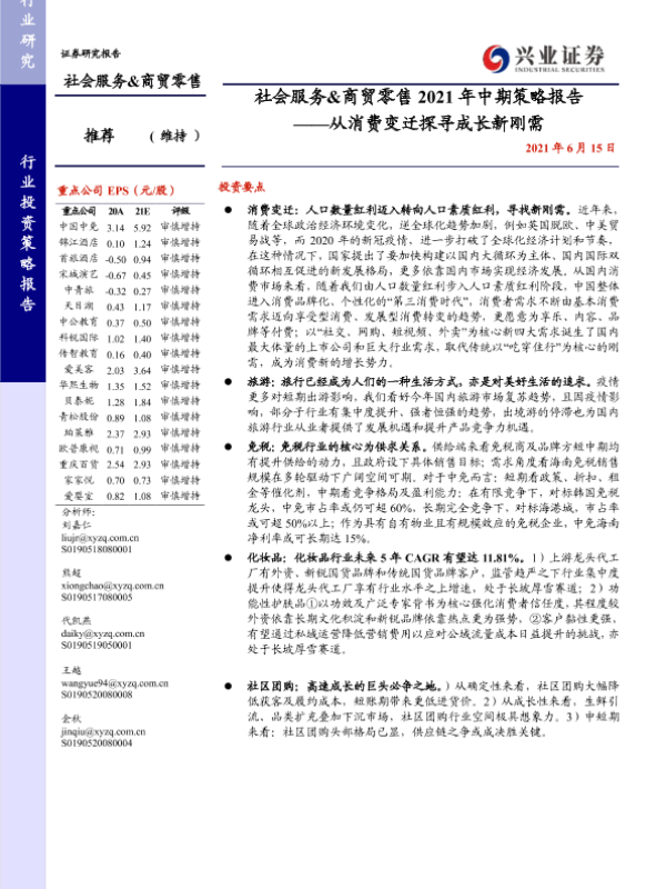 【兴业证券】【20210615】社会服务&商贸零售2021年中期策略报告:从消费变迁探寻成长新刚需-117页