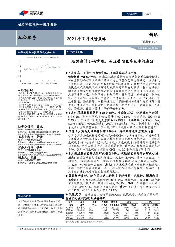 【国信证券】【20210629】2021年7月投资策略:局部疫情影响有限,关注暑期旺季及中报表现-16页