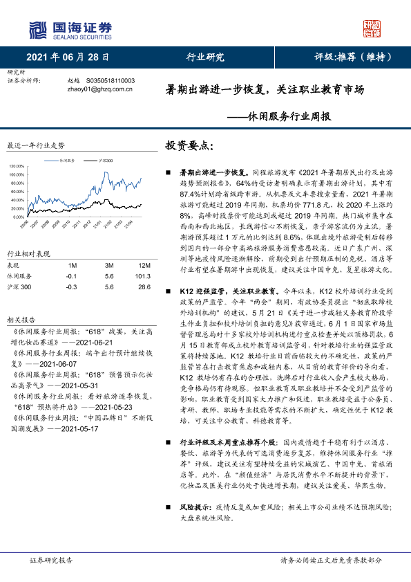 【国海证券】【20210628】休闲服务行业周报:暑期出游进一步恢复,关注职业教育市场-11页