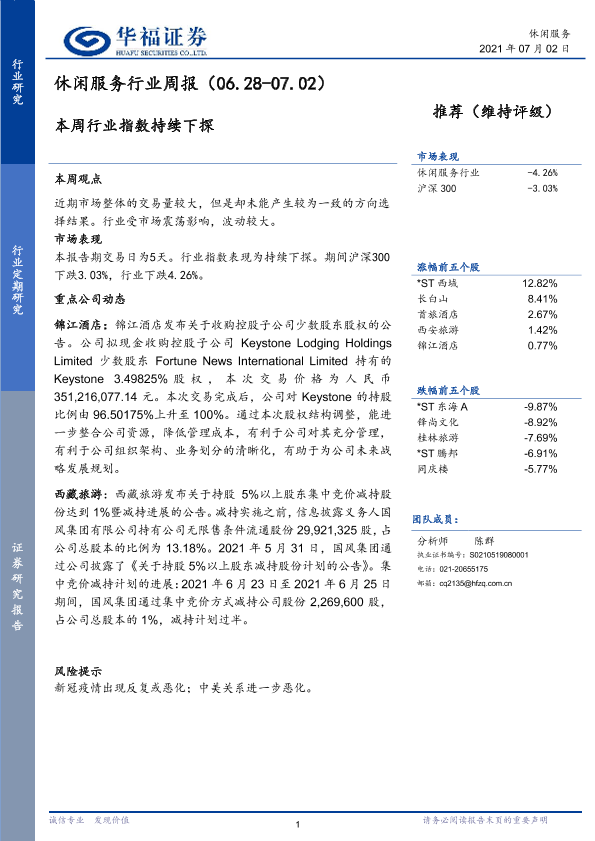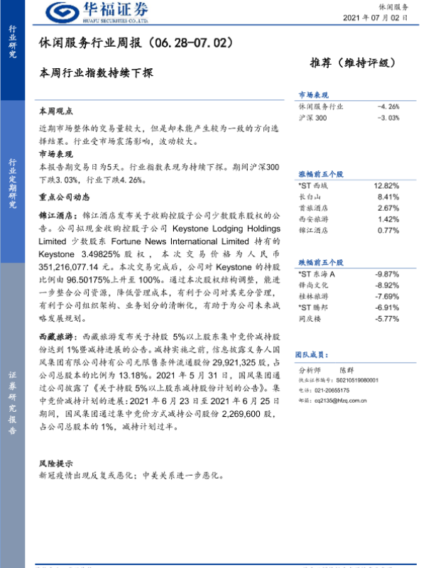 【华福证券】【20210702】休闲服务行业周报:本周行业指数持续下探-5页