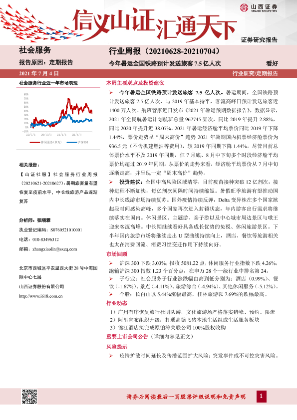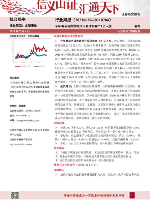 【山西证券】【20210704】社会服务行业周报:今年暑运全国铁路预计发送旅客7.5亿人次-9页