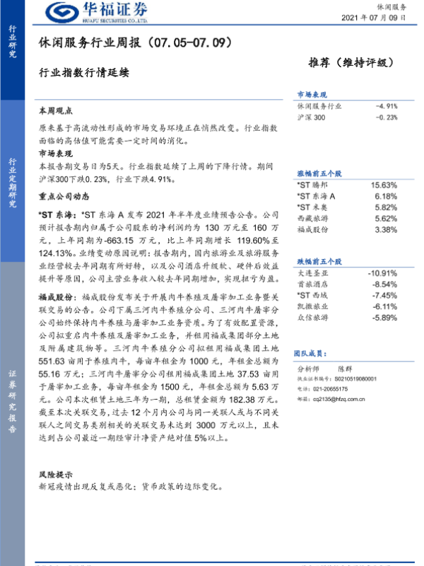 【华福证券】【20210709】休闲服务行业周报:行业指数行情延续-5页