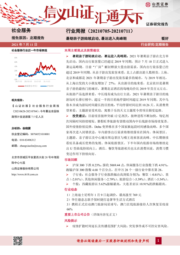 【山西证券】【20210711】社会服务行业周报:暑期亲子游陆续启动,暑运进入高峰期-9页