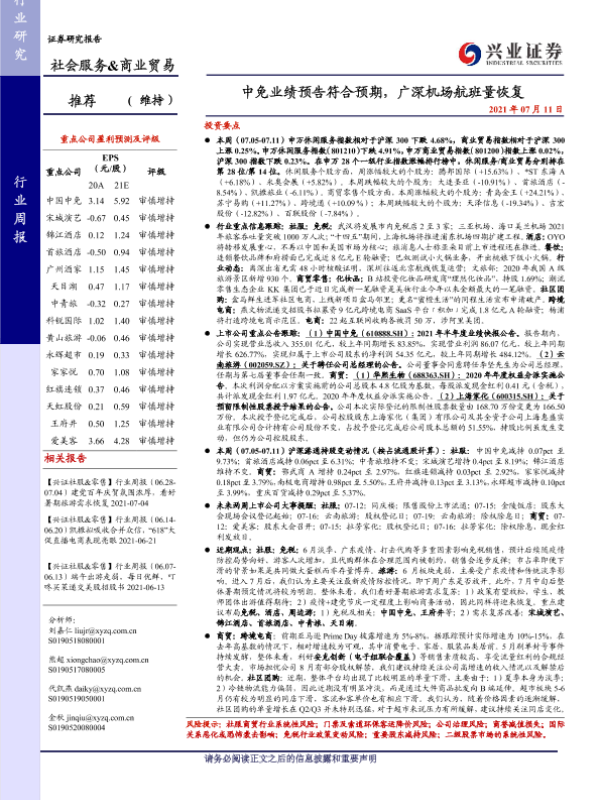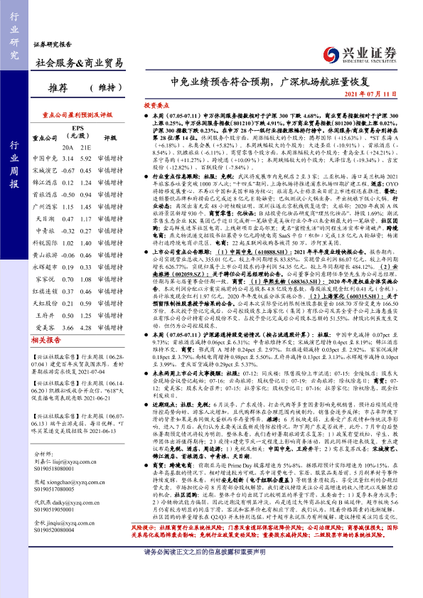 【兴业证券】【20210711】中免业绩预告符合预期,广深机场航班量恢复-21页