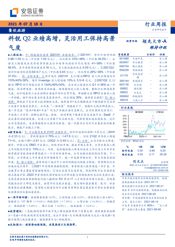 【安信证券】【20210718】餐饮旅游行业周报:科锐Q2业绩高增,灵活用工保持高景气度-11页