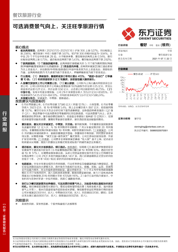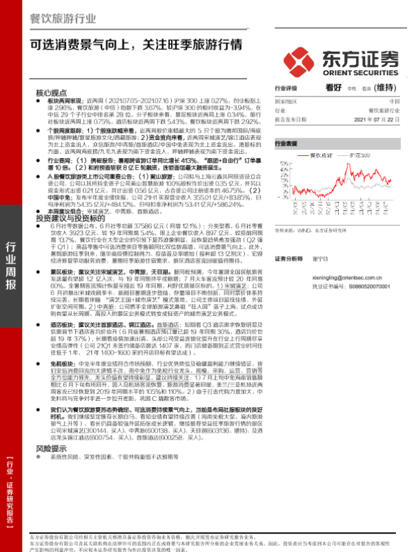 【东方证券】【20210722】餐饮旅游行业周报:可选消费景气向上,关注旺季旅游行情-12页