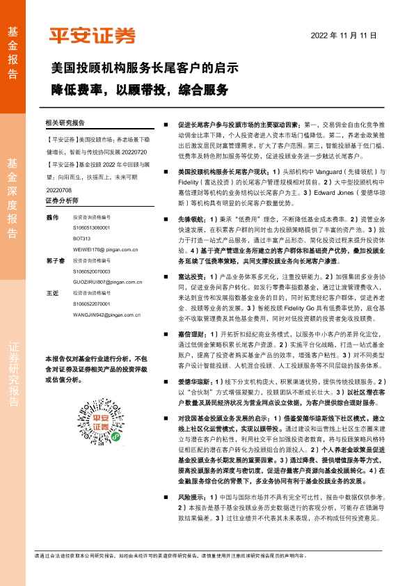 【平安证券】【20221111】美国投顾机构服务长尾客户的启示:降低费率,以顾带投,综合服务-18页
