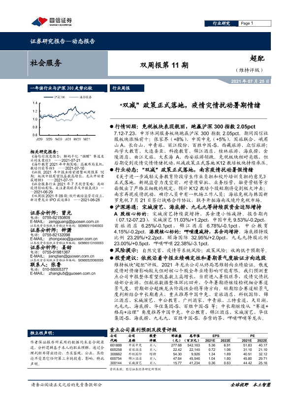 【国信证券】【20210725】社会服务双周报第11期:“双减”政策正式落地,疫情灾情扰动暑期情绪-9页