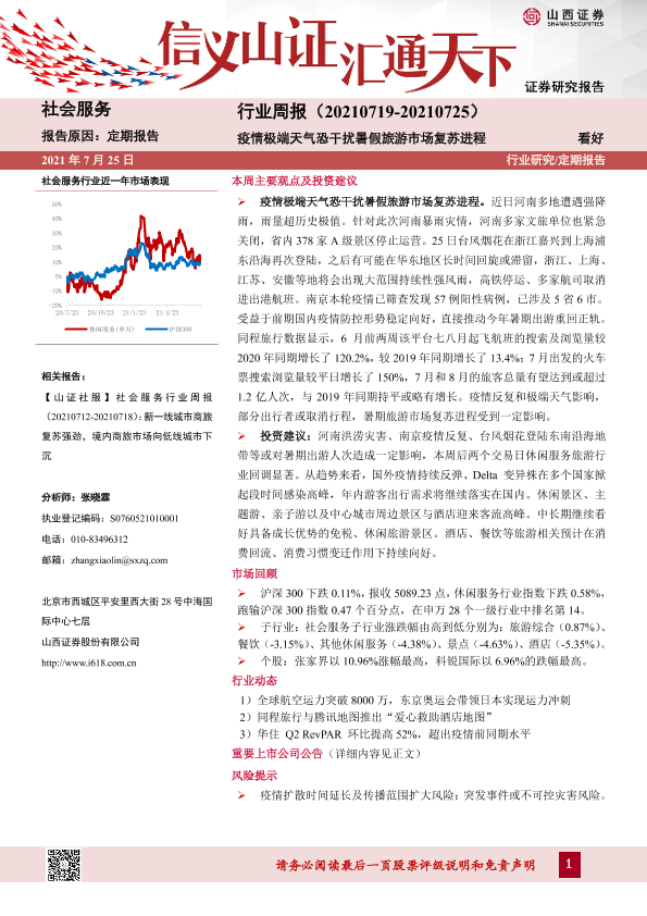 【山西证券】【20210725】社会服务行业周报:疫情极端天气恐干扰暑假旅游市场复苏进程-9页
