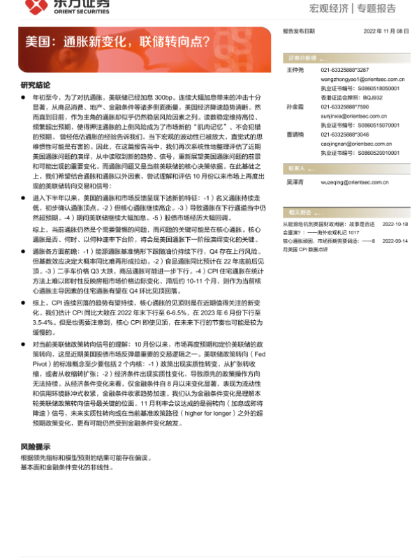 【东方证券】【20221108】美国:通胀新变化,联储转向点?-16页