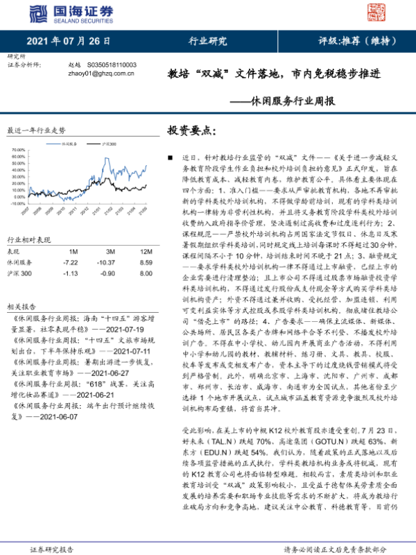 【国海证券】【20210726】休闲服务行业周报:教培“双减”文件落地,市内免税稳步推进-11页