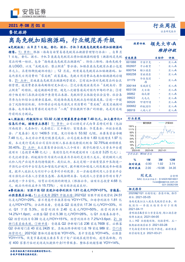 【安信证券】【20210801】餐饮旅游行业周报:离岛免税加贴溯源码,行业规范再升级-13页