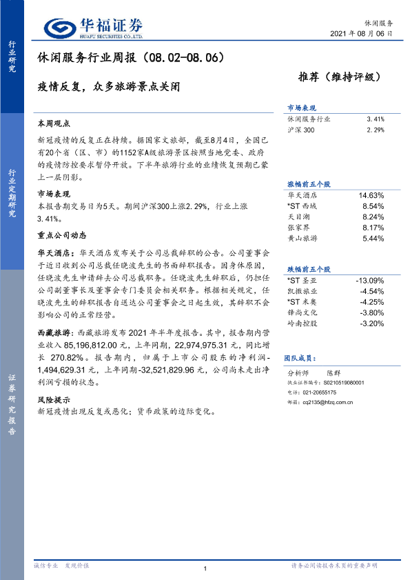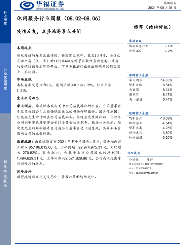 【华福证券】【20210806】休闲服务行业周报:疫情反复,众多旅游景点关闭-5页