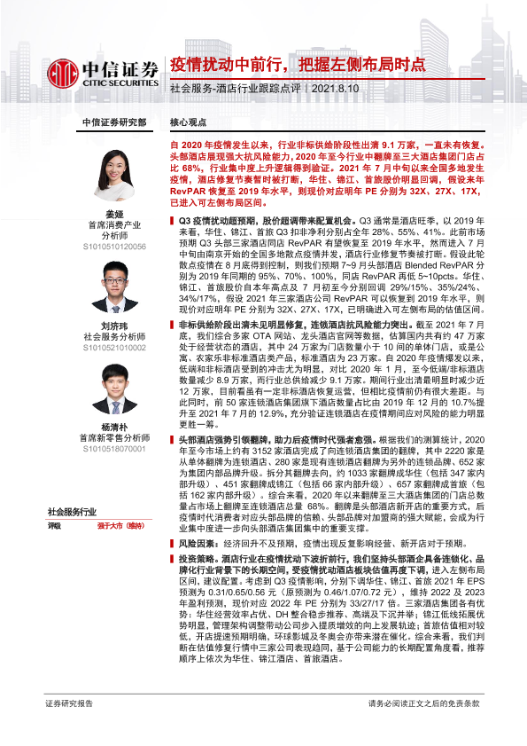 【中信证券】【20210810】社会服务-酒店行业跟踪点评:疫情扰动中前行,把握左侧布局时点-4页