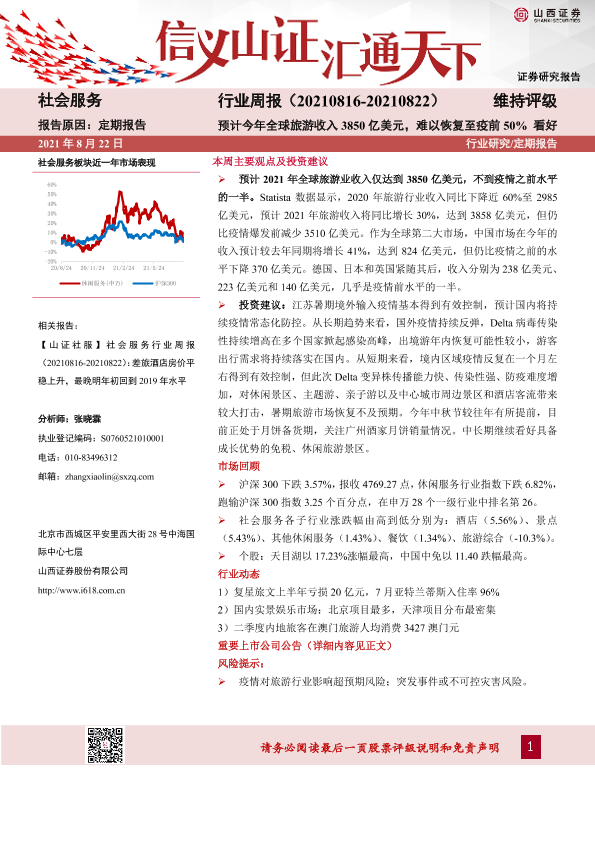 【山西证券】【20210822】社会服务行业周报:预计今年全球旅游收入3850亿美元,难以恢复至疫前50%-10页