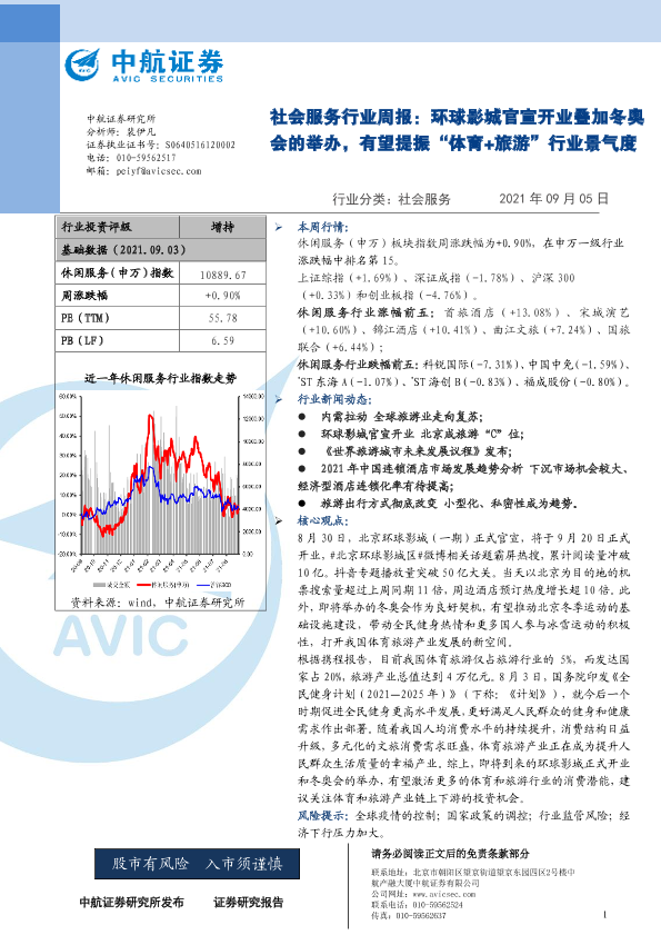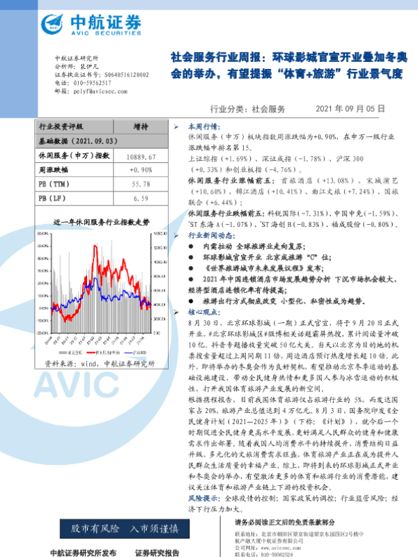 【中航证券】【20210905】社会服务行业周报:环球影城官宣开业叠加冬奥会的举办,有望提振“体育+旅游”行业景气度-8页