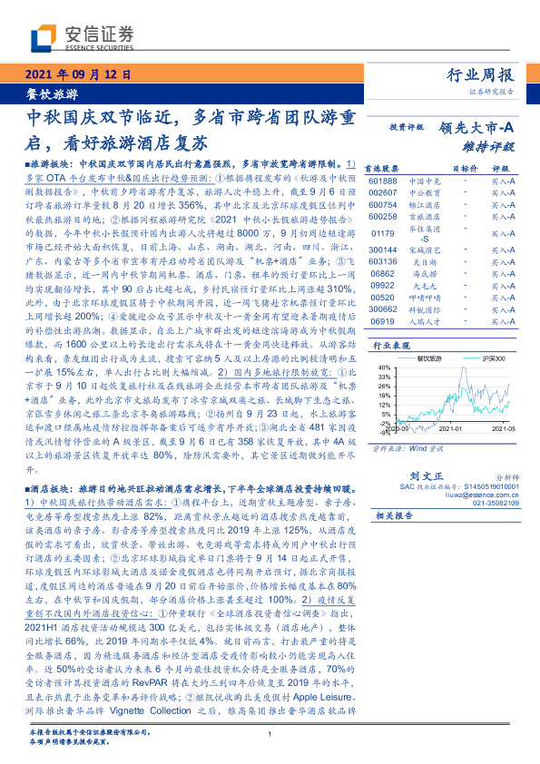 【安信证券】【20210912】餐饮旅游行业:中秋国庆双节临近,多省市跨省团队游重启,看好旅游酒店复苏-15页