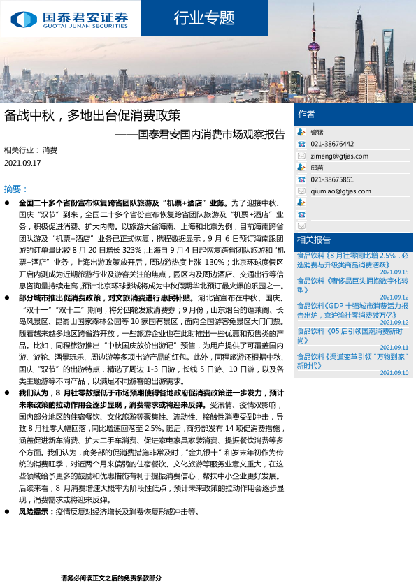 【国泰君安证券】【20210917】备战中秋,多地出台促消费政策-2页