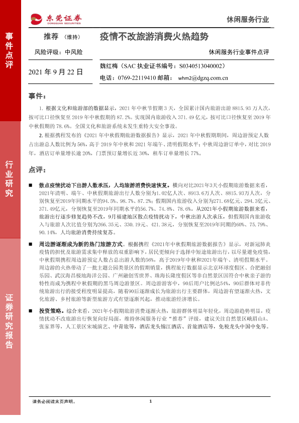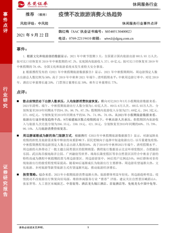 【东莞证券】【20210922】休闲服务行业事件点评:疫情不改旅游消费火热趋势-2页