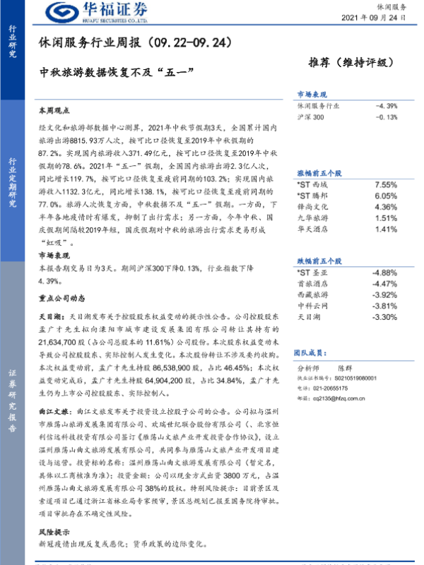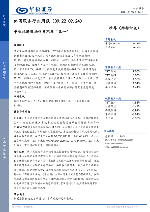 【华福证券】【20210924】休闲服务行业周报:中秋旅游数据恢复不及“五一”-5页