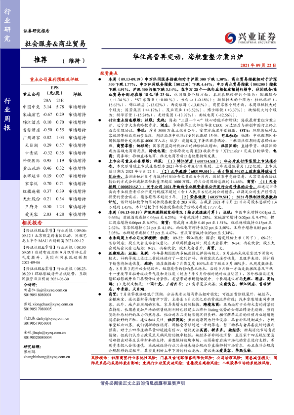 【兴业证券】【20210922】华住高管再变动,海航重整方案出炉-23页