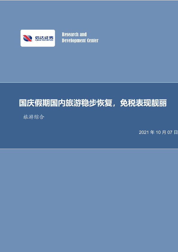 【信达证券】【20211007】国庆假期国内旅游稳步恢复,免税表现靓丽-8页