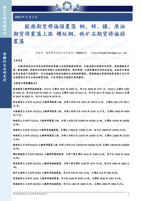 【国泰君安期货】【20221102】股指期货将偏强震荡,铜、锌、镍、原油期货将震荡上涨,螺纹钢、铁矿石期货将偏弱震荡-42页