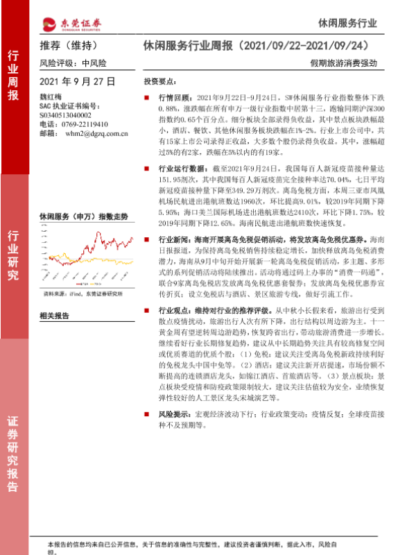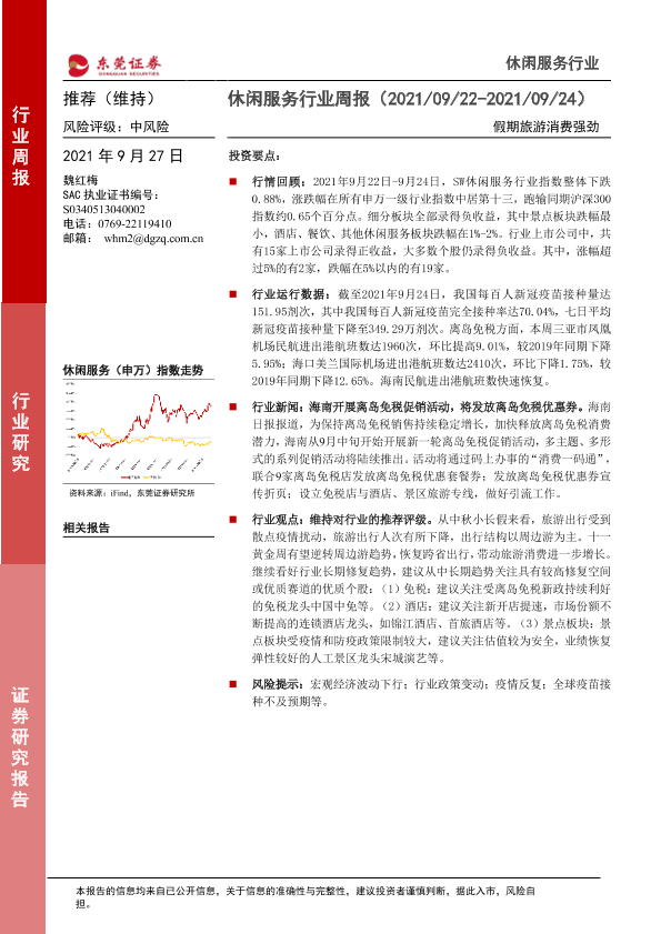 【东莞证券】【20210927】休闲服务行业周报:假期旅游消费强劲-9页