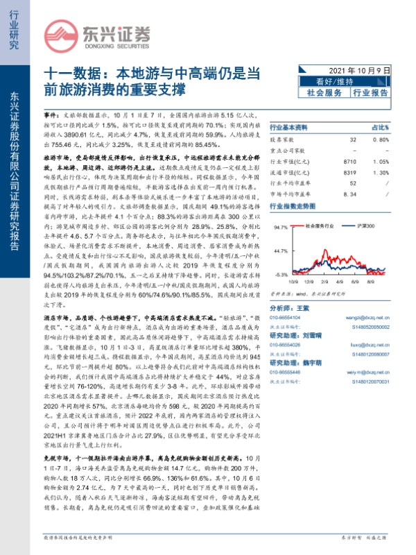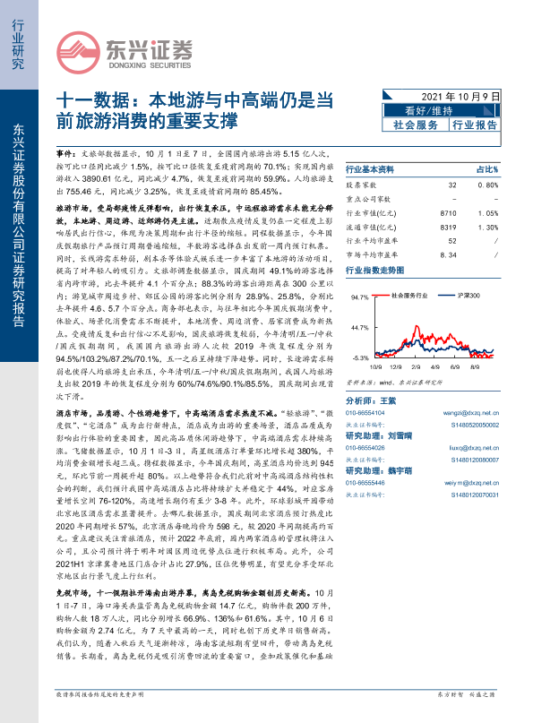 【东兴证券】【20211009】行业十一数据:本地游与中高端仍是当前旅游消费的重要支撑-5页