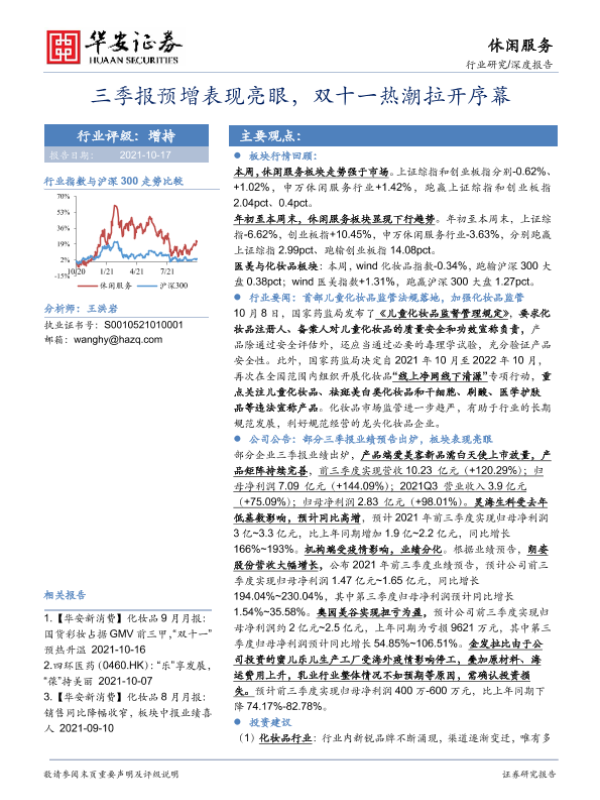 【华安证券】【20211017】三季报预增表现亮眼,双十一热潮拉开序幕-16页