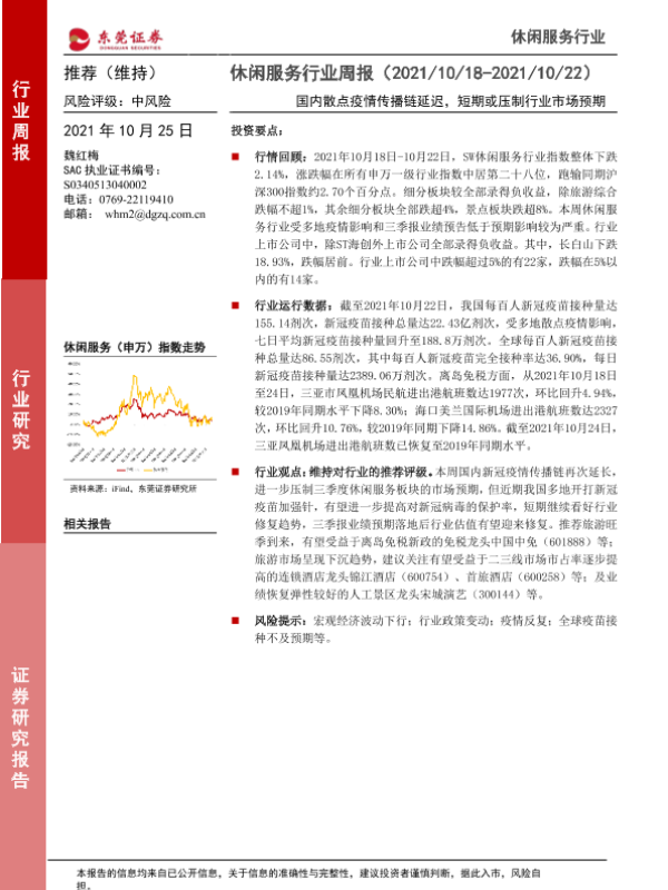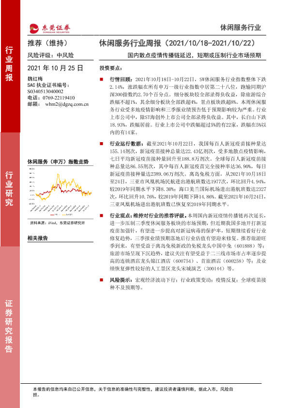 【东莞证券】【20211025】休闲服务行业周报:国内散点疫情传播链延迟,短期或压制行业市场预期-8页