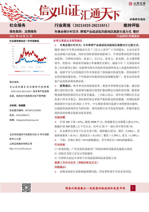 【山西证券】【20211031】社会服务行业周报:冬奥会倒计时百天 滑雪产品或成低风险地区旅游主流方式-9页