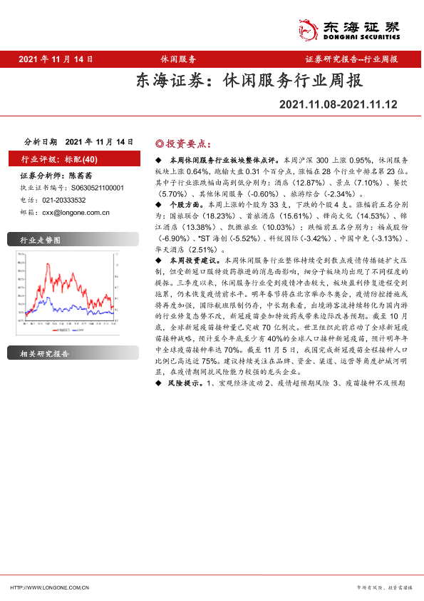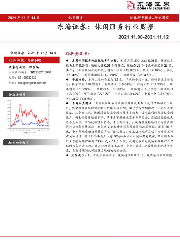 休闲服务 旅游行业 疫情防控 股市分析 行业周报