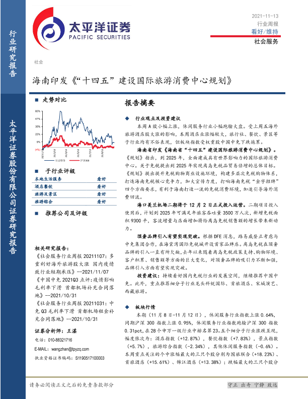 【太平洋证券】【20211113】社会服务行业周报:海南印发《“十四五”建设国际旅游消费中心规划》-12页