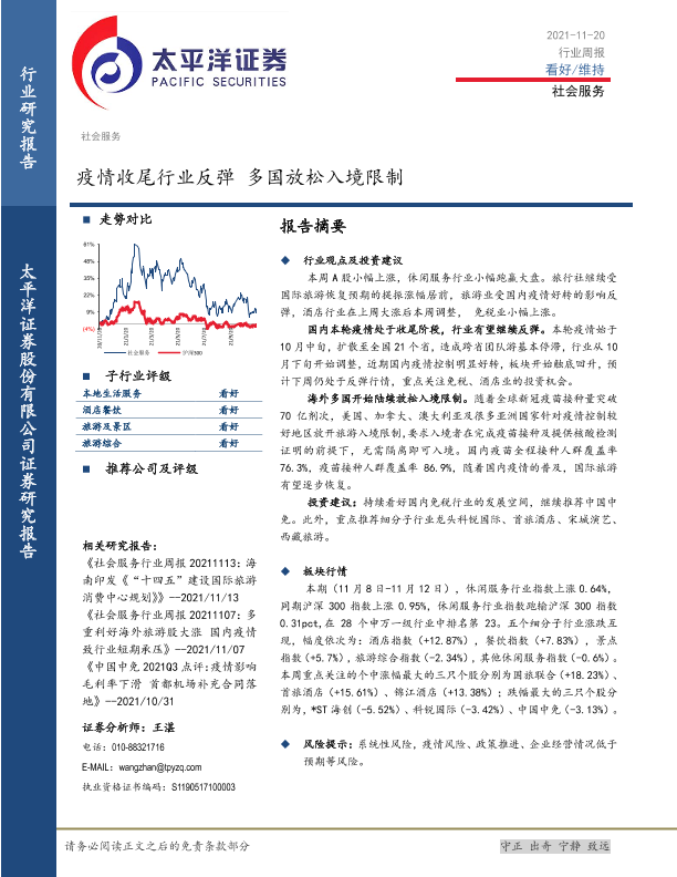 【太平洋证券】【20211120】社会服务行业周报:疫情收尾行业反弹 多国放松入境限制-11页