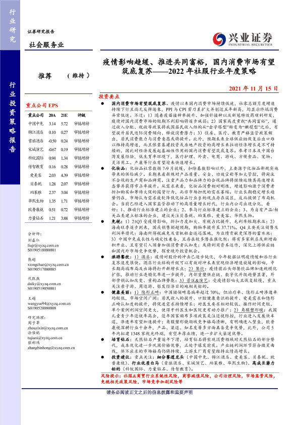 共同富裕 消费市场复苏 疫情影响 社会服务业 行业投资策略