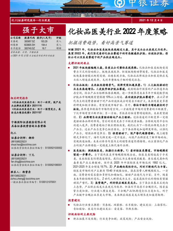 【中银证券】【20211204】化妆品医美行业2022年度策略:把握消费趋势,看好高景气赛道-28页