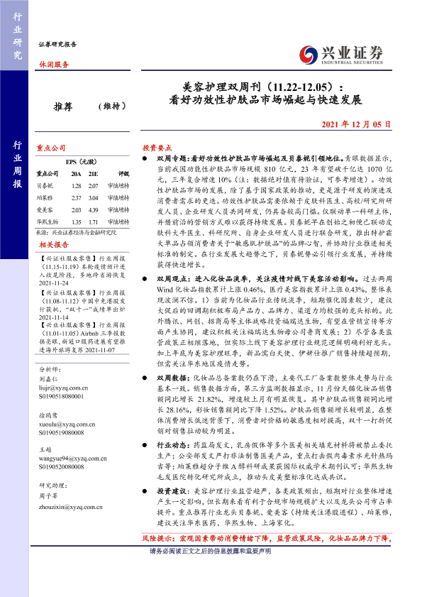 【兴业证券】【20211205】美容护理双周刊:看好功效性护肤品市场崛起与快速发展-17页
