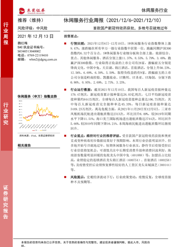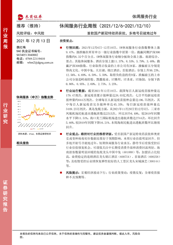 【东莞证券】【20211213】休闲服务行业周报:首款国产新冠特效药获批,多地号召就地过年-9页