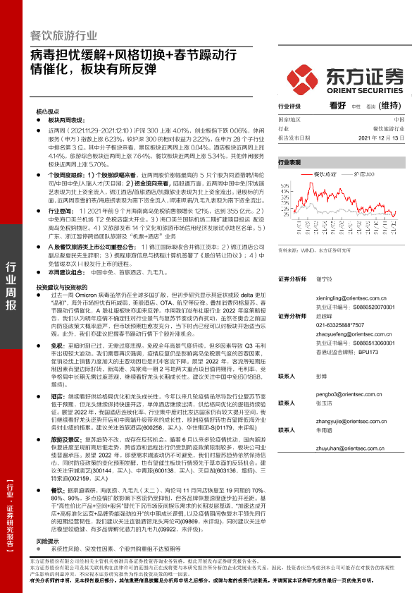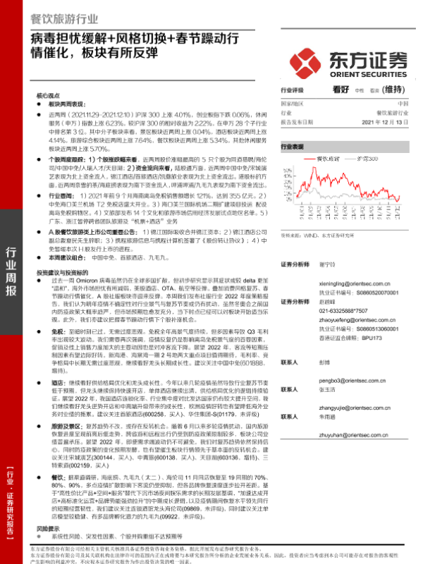 【东方证券】【20211213】餐饮旅游行业周报:病毒担忧缓解+风格切换+春节躁动行情催化,板块有所反弹-13页