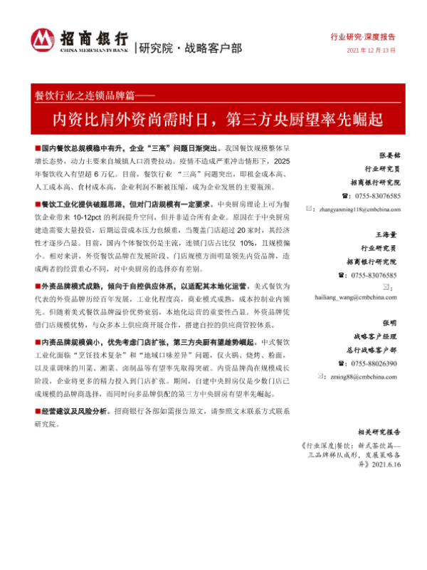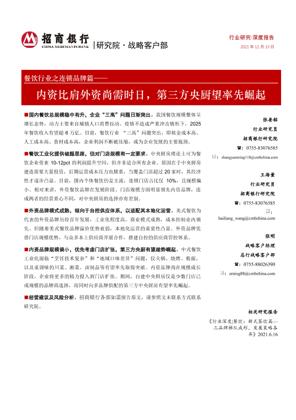 【招商银行】【20211213】餐饮行业之连锁品牌篇:内资比肩外资尚需时日,第三方央厨望率先崛起-31页