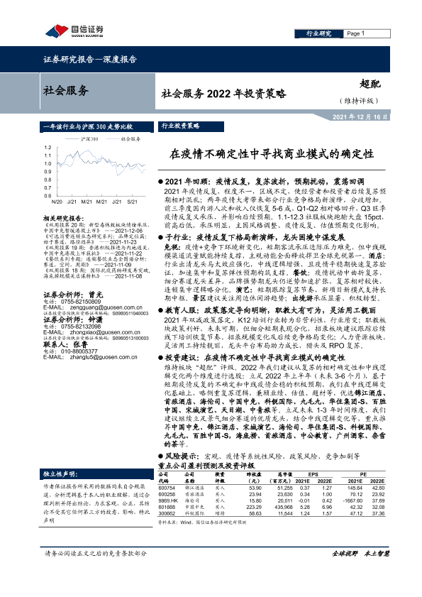 【国信证券】【20211216】社会服务2022年投资策略:在疫情不确定性中寻找商业模式的确定性-37页