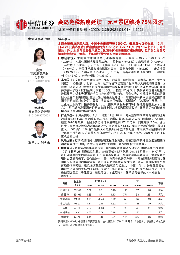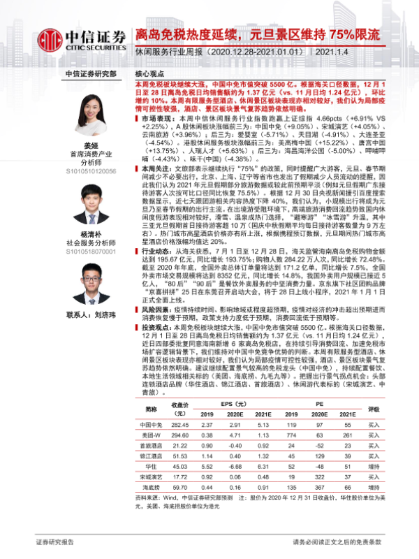 【中信证券】【20210104】休闲服务行业周报:离岛免税热度延续,元旦景区维持75限流-12页