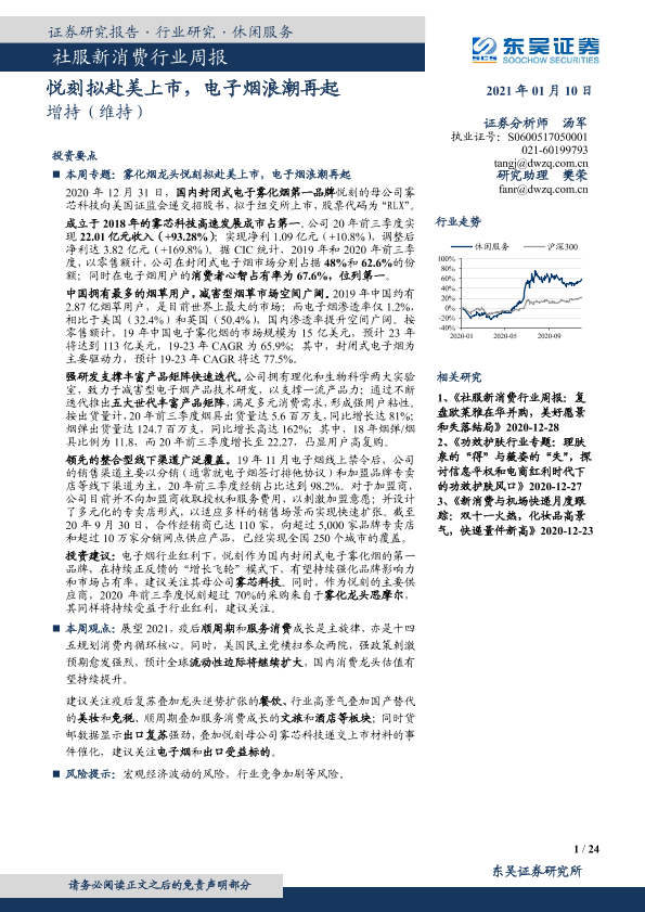 【东吴证券】【20210110】社服新消费行业周报:悦刻拟赴美上市,电子烟浪潮再起-24页