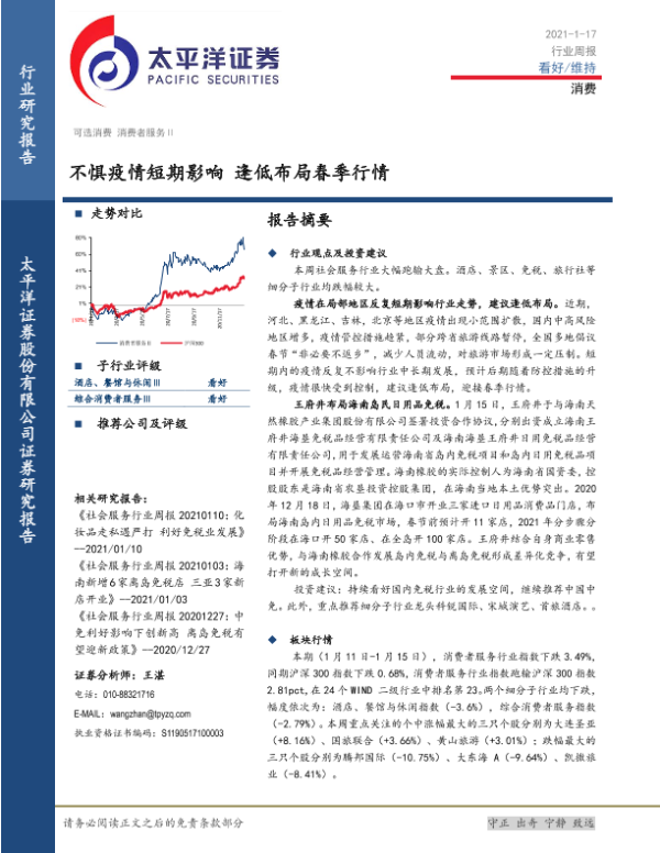 【太平洋证券】【20210117】消费行业周报:不惧疫情短期影响 逢低布局春季行情-14页