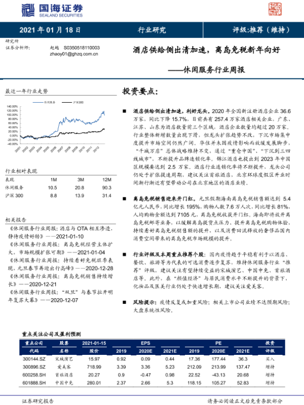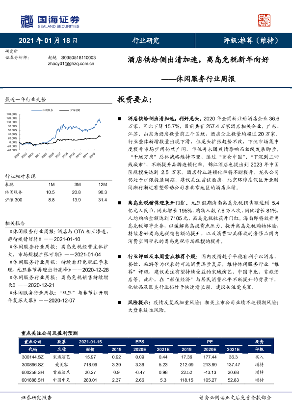 【国海证券】【20210118】休闲服务行业周报:酒店供给侧出清加速,离岛免税新年向好-10页