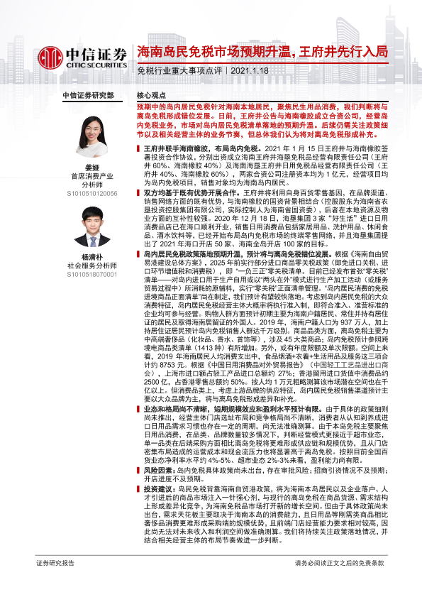【中信证券】【20210118】海南岛民免税预期升温,王府井先行入局-2页