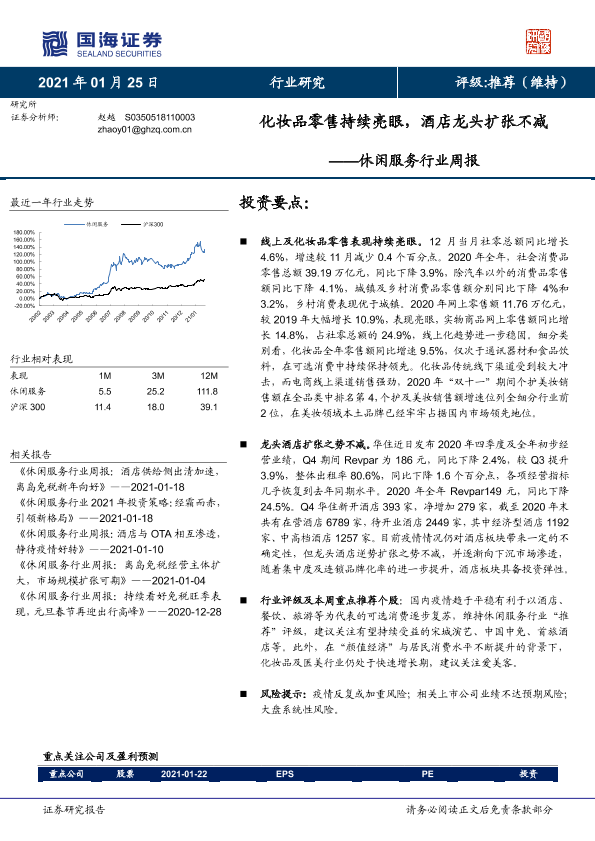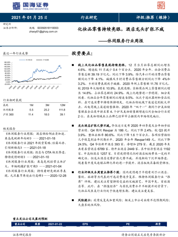 【国海证券】【20210125】休闲服务行业周报:化妆品零售持续亮眼,酒店龙头扩张不减-10页