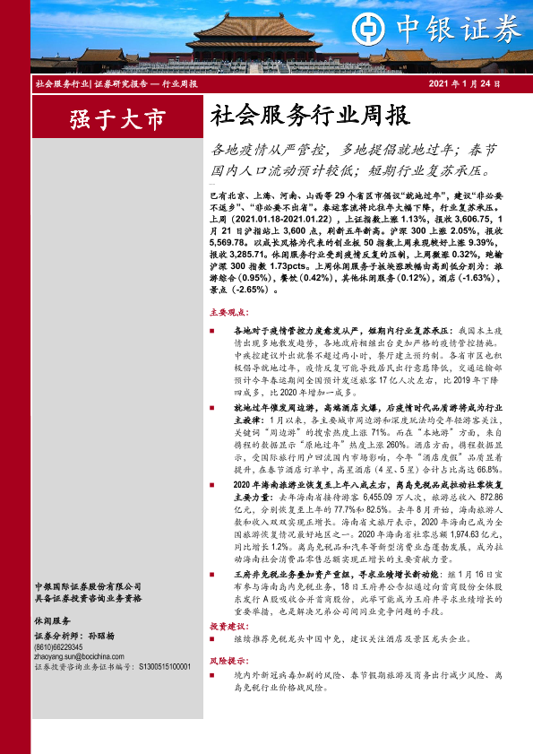【中银证券】【20210124】社会服务行业周报:各地疫情从严管控,多地提倡就地过年;春节国内人口流动预计较低;短期行业复苏承压-19页