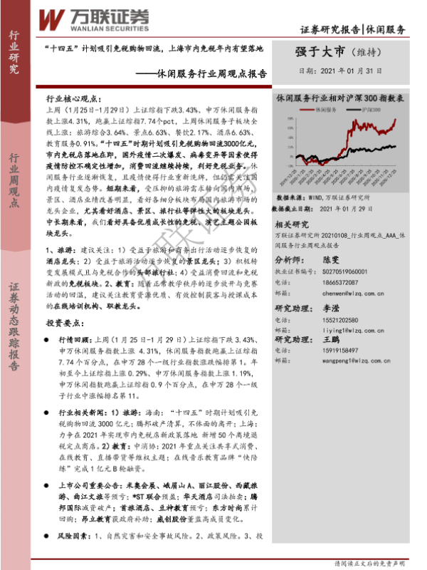 【万联证券】【20210131】“十四五”计划吸引免税购物回流,上海市内免税年内有望落地-11页